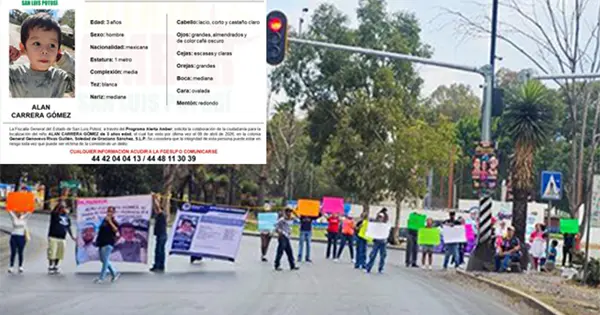 La tarde de este domingo, familiares de Alan realizaron un bloqueo en el distribuidor Juárez para exigir a la Fiscalía General del Estado se agilicen las investigaciones para encontrarlo y recuperarlo, todav vez que podría estar en riesgo su integridad física y emocional.