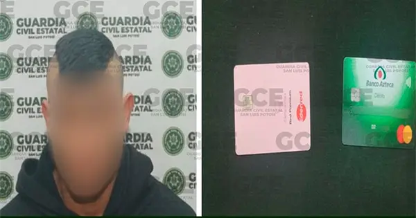 Un obrero de la Zona Industrial fue arrestado por agentes de la Guardia Civil Estatal, luego de que le había robado tarjetas bancarias a una compañera de trabajo, la cual pidió ayuda se logró la detención, asegurándosele los plásticos.