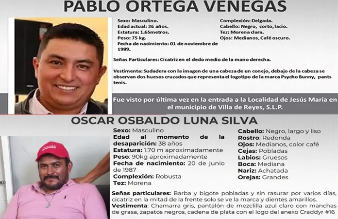 A tres días de haber sido levantados en el municipio de Villa de Reyes, dos hombres fueron encontrados asesinados a balazos en territorio de Zacatecas; se trató del empresario Pablo Ortega Venegas del 36 años de edad, ex candidato a la presidencia municipal, así como un colaborador de nombre Óscar Osbaldo Luna Silva de 38 años.