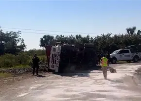 Vuelca camión cañero en El Naranjo; el chofer resulta ileso
