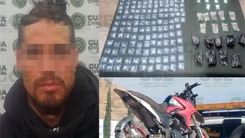 En la inspección, al hombre le encontraron 150 dosis de la droga sintética conocida como "cristal", además de 18 bolsas con marihuana y 10 dosis de cocaína, por lo que se procedió a su detención junto con la motocicleta en la que circulaba.
