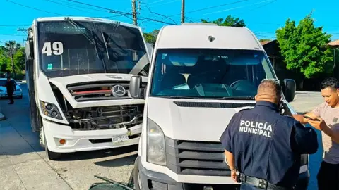 El conductor de una camioneta tipo panel, marca Volkswagen y color blanco, se disponía a salir de la ciudad para llevar a un grupo de turistas a un paraje. Sin embargo, al circular por la calle Comonfort y llegar al cruce con la calle Madero, no realizó el alto correspondiente y se atravesó al paso del autobús urbano número 49, de la ruta Ecocentralita–El Carmen. El operador del autobús no alcanzó a frenar y terminó chocando contra la camioneta.