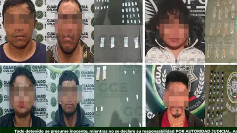 En tanto, en el municipio huasteco de Huehuetlán, la GCE detuvo a José "N", de 33 años, presunto miembro de una célula delictiva, con 28 dosis de marihuana y 36 dosis de "cristal".