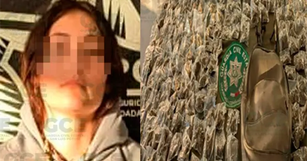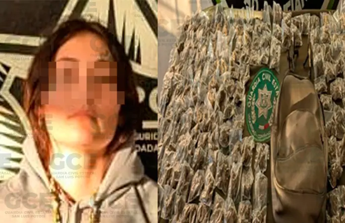Una mujer que dijo ser integrante de un grupo delictivo, presuntamente dedicada a la venta y/o distribución de droga, fue capturada por elementos de la Guardia Civil Estatal en la colonia La Unión, del municipio de Cedral, cuando la detectaron con 150 bolsas de marihuana y ponchallantas.