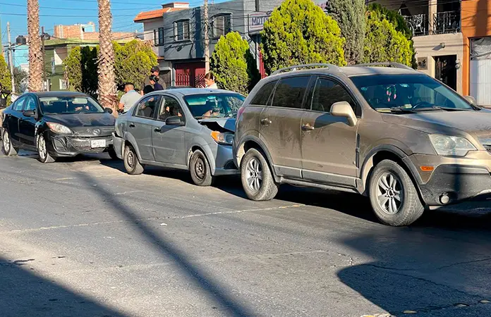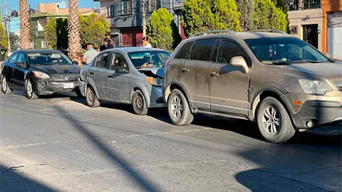 Sólo daños materiales se registraron durante una carambola ocurrida la tarde de este domingo en la avenida México y la calle Framboyanes, en la colonia Industrial Mexicana, en donde por fortuna no se reportaron personas lesionadas.