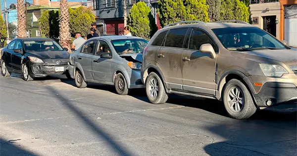 Al aproximarse a la avenida Framboyanes, el conductor no guardó su distancia de seguridad y de esta forma impactó por alcance contra un automóvil Chevrolet Aveo color plata, proyectándolo a su vez con la parte posterior de una camioneta Acura.