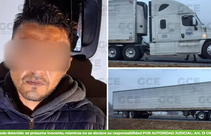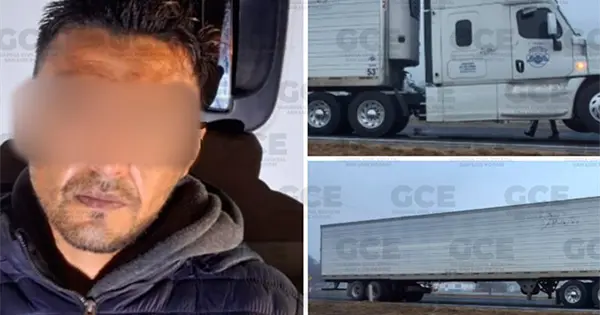 Un trailero que tenía orden de aprehensión vigente por robo de vehículo, fue detenido por agentes de la Guardia Civil Estatal que lo sorprendieron cuando manejaba una unidad con placa sobrepuesta.