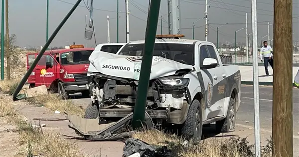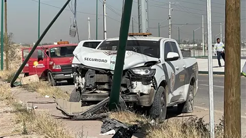 Estrellan vehículo de seguridad privada en poste de Salk