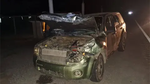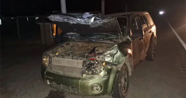 La noche del pasado jueves, una camioneta chocó contra la parte trasera de una camioneta Ford Escape verde, con placas de San Luis Potosí, y la proyectó contra una camioneta Nissan blanca de caja cerrada.