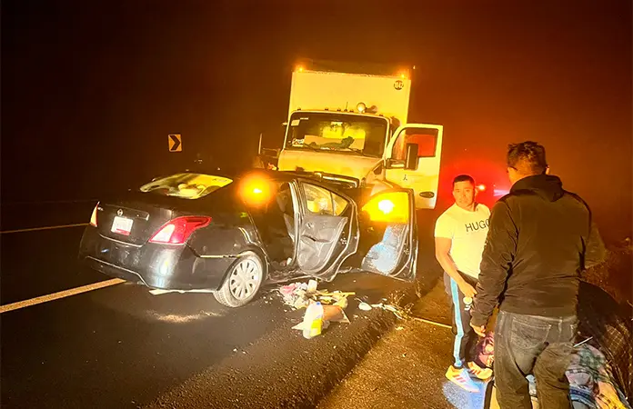 Los hechos ocurrieron en el kilómetro 12 de dicha vía, donde un vehículo Nissan Versa color negro con placas de Tamaulipas, colisionó contra un camión de caja cerrada propiedad de una abarrotera de Ciudad Valles.