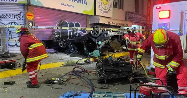 Audi se impacta, vuelca y deja dos personas sin vida en Himno Nacional.