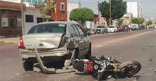 Un hombre lesionado fue el saldo de un en choque de una motocicleta con vehículo en la avenida 20 de Noviembre a la altura de la calle Reforma.