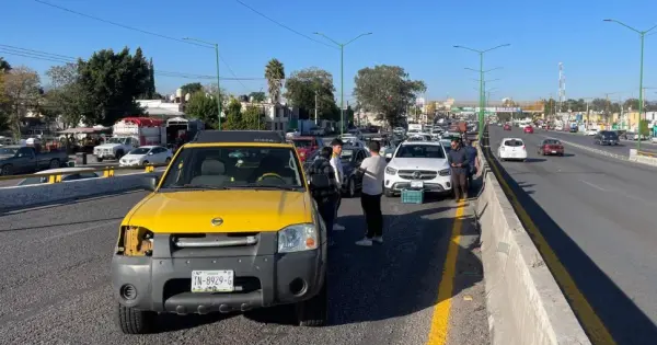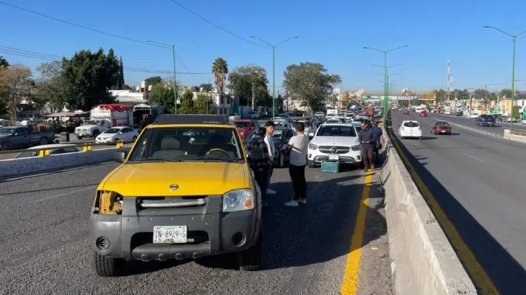 El percance ocurrió antes de las 08:00 horas, luego de que una caja de plástico tirada sobre el carril izquierdo obligó a una camioneta Mercedes Benz a detener su marcha. En ese momento, un vehículo Volkswagen color azul que circulaba por el carril derecho chocó por alcance contra una camioneta Nissan Frontier.