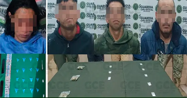 Cuatro personas fueron detenidas por elementos de la Guardia Civil Estatal con dosis de droga y ahora enfrentan delitos contra la salud, una mujer al parecer vendía en el municipio de Charcas y tres sujetos fueron detectados en la colonia Morales, en esta capital.
