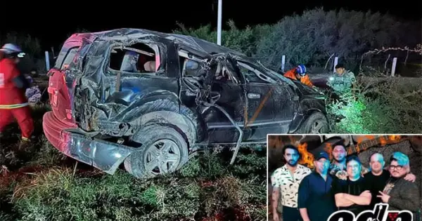 MATEHUALA.- La noche del viernes, en el kilometro 149 de la carretera ‘57, una camioneta se salió del camino y se volcó dando varias volteretas, lamentablemente tres hombres y una mujer perdieron la vida, eran integrantes de la banda de rock ADN Rockmantic Band, originaria de Ciudad Mante, Tamaulipas.