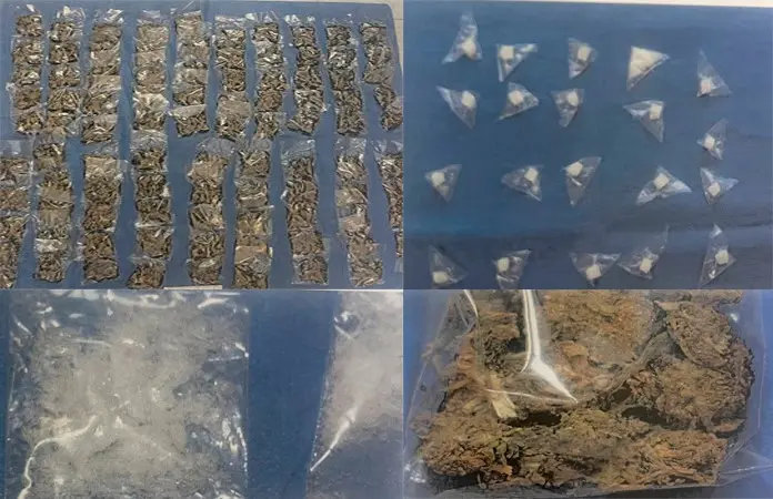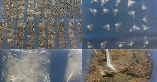 Al realizar una revisión de la mochila, los elementos localizaron dos bolsas, las cuales contenían 807 gramos de marihuana, en otra bolsa había 108 gramos de cristal y 20 bolsitas de plástico con la droga conocida como piedra, con un peso de seis gramos.