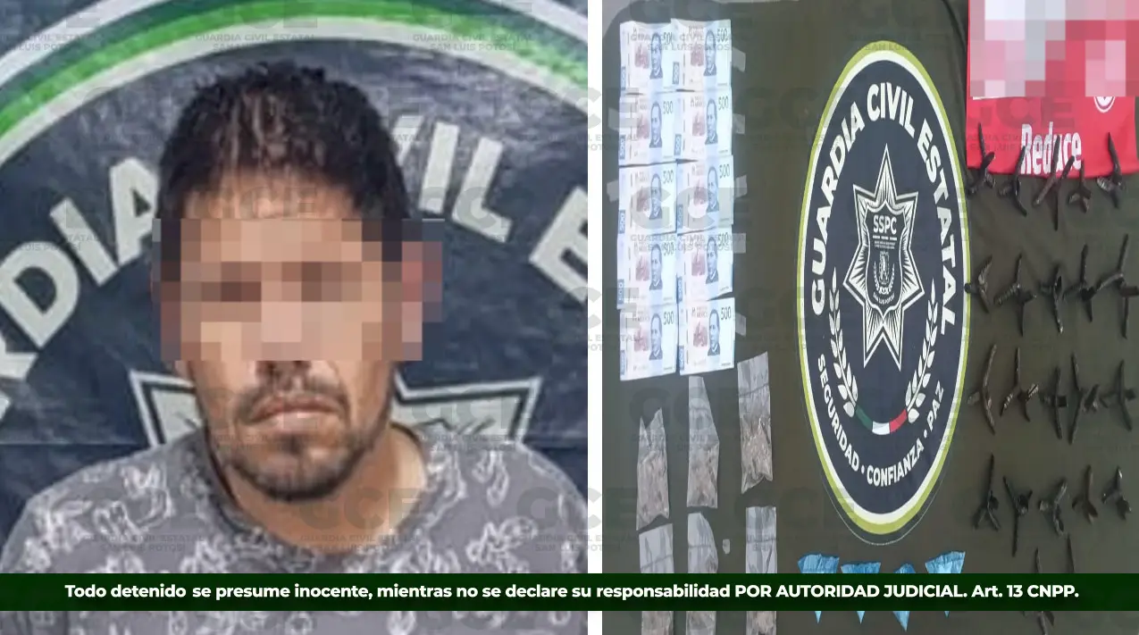 La Secretaría de Seguridad y Protección Ciudadana del Estado informó la detención de un hombre en el municipio de Ciudad Valles por su probable responsabilidad en delitos contra la salud, portación de objetos prohibidos y cohecho.