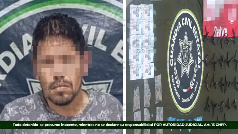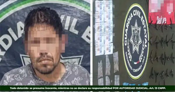 De acuerdo con la información oficial, los hechos ocurrieron en la colonia La Diana, donde elementos de la Guardia Civil Estatal detuvieron a César "N", de 40 años de edad.