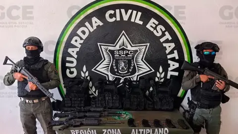 Más adelante los maleantes se detuvieron y continuaron si huida a pie mientras los agentes procedieron a asegurarla. Al realizar una inspección, en el interior pudieron encontrar tres armas largas, cuatro chalecos tácticos y cinco cargadores metálicos.