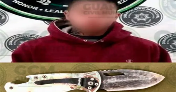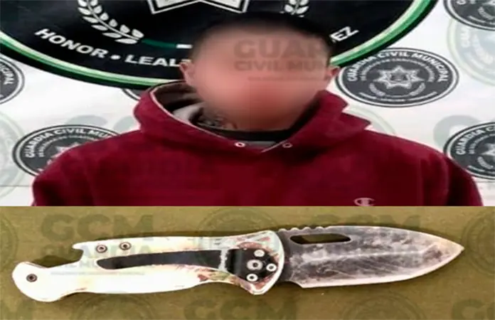 Después de varios minutos de diálogo, el sujeto se identificó como Octavio "N" de 18 años, quien mostró una actitud agresiva, y se procedió conforme al debido protocolo de actuación, localizándole un objeto punzocortante similar a un cuchillo, haciéndole saber que sería detenido por portación de arma prohibida.