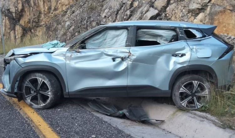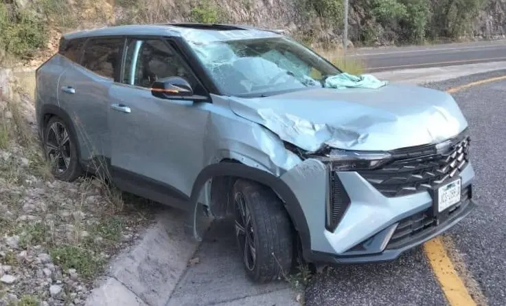 TAMASOPO.- Una camioneta salió del camino y terminó chocando contra un cerro en la autopista Valles-Rayón, cerca del acceso a Tamasopo.