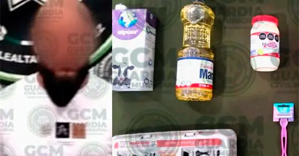 Los oficiales se acercaron con el señalado, y luego de entrevistarlo se identificó como José "N", a quien le localizaron comestibles y un artículo de higiene personal, negándose a pagar.