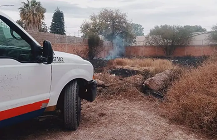 Un incendio arrasó con maleza en un lote baldío de la colonia Tercera Grande, afortunadamente las llamas pudieron ser controladas antes de que alcanzaran las viviendas, personal de Protección Civil Municipal acudió a prestar auxilio a tiempo.
