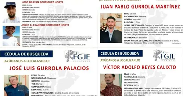Entre el 19 y 21 de noviembre, familiares reportaron la desaparición de siete personas, la mayoría jóvenes, entre los que se encuentran un padre y su hijo, así como dos hermanos.