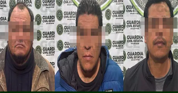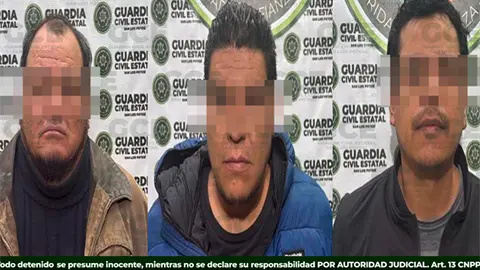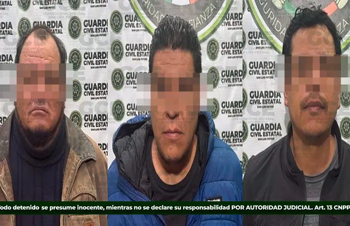 En operativos de vigilancia, en el municipio de Santa María del Río, la Guardia Civil Estatal detuvo a tres personas por probables ataques a las vías de comunicación y extorsión, luego de que un afectado denunciara los hechos ante las autoridades.