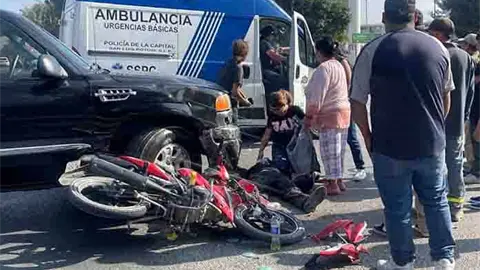 Sin embargo, lo hizo sin tomar las debidas precauciones y en esos momentos por los carriles opuestos circulaba un joven a bordo de una motocicleta color rojo, el cual no alcanzó a detenerse y de forma irremediable chocó de frente contra el costado izquierdo de la camioneta, en la llanta y salpicadera.