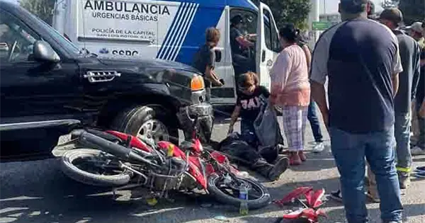 Por el fuerte golpe, el joven motociclista se ocasionó lesiones de consideración en todo el cuerpo y fue atendido por paramédicos de Urgencias Básicas de la Policía Municipal, quienes lo trasladaron a un hospital para que recibiera la atención médica requerida ya que su estado se reportaba grave.
