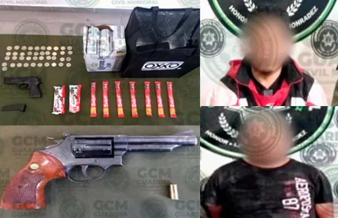 Agentes de la Guardia Civil de Soledad detuvieron a un hombre que "echaba bala" y a otro por presunto robo a comercio, esto en recorridos de vigilancia en las las colonias Genaro Vázquez y El Lavadero.