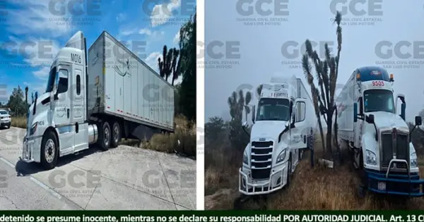 De acuerdo a los hechos, fue la madrugada de ayer que a los agentes estatales, de la División Caminos, les fue reportado que dos tráilers habían dejado de emitir sus ubicaciones en los dispositivos de rastreo, por lo que se solicitaba su ayuda para la búsqueda.