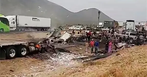Fue en el kilómetro 85, a la altura de la comunidad de Charco Cercado, en el municipio de Guadalcázar, en donde chocó por alcance contra otro tráiler, al que a su vez proyectó contra un camión también de carga tipo torthon.