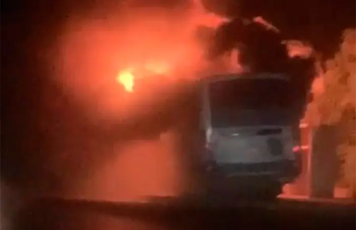Ante el fuerte golpe, el camión comenzó a quemarse del motor y rápidamente las llamas se extendieron por toda la unidad, aunque no se reportaron personas lesionadas y se ignora si llevaba pasajeros.