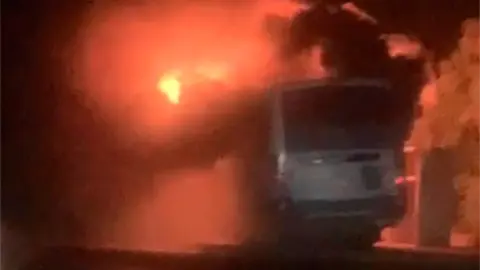 Policías de la Guardia Civil Estatal, División Caminos, abanderaron el área y tomaron conocimiento del incidente, ordenando el traslado de la unidad a una pensión, aunque terminó en pérdida total ya que las llamas la consumieron.