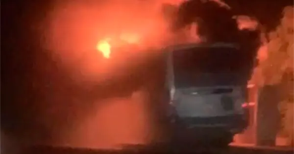 Luego de chocar contra un poste de concreto, un camión de transporte de personal se quemó por completo en el Anillo Periférico Norte, no se reportaron personas lesionadas en este caso.