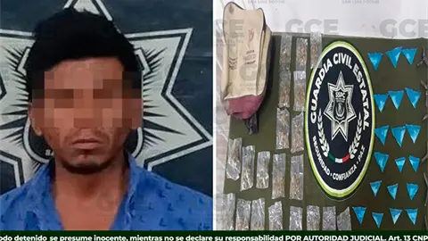 El detenido manifestó estar vinculado como narcomenudista a un grupo delictivo y, durante la intervención, se le aseguraron más de 40 dosis tanto de hierba verde y seca con características de marihuana, como de una sustancia granulada con características de "cristal", así como artefactos conocidos como "ponchallantas".