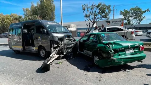 A causa del impacto, el conductor del taxi resultó con diversos golpes y fue atendido por los paramédicos, que lo trasladaron a un hospital para que recibiera la atención médica requerida.