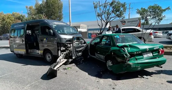 Taxista resultó lesionado luego de participar en un aparatoso accidente vial en la colonia San Felipe, en donde chocó contra una camioneta de personal resultando también cuantiosos daños materiales.