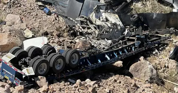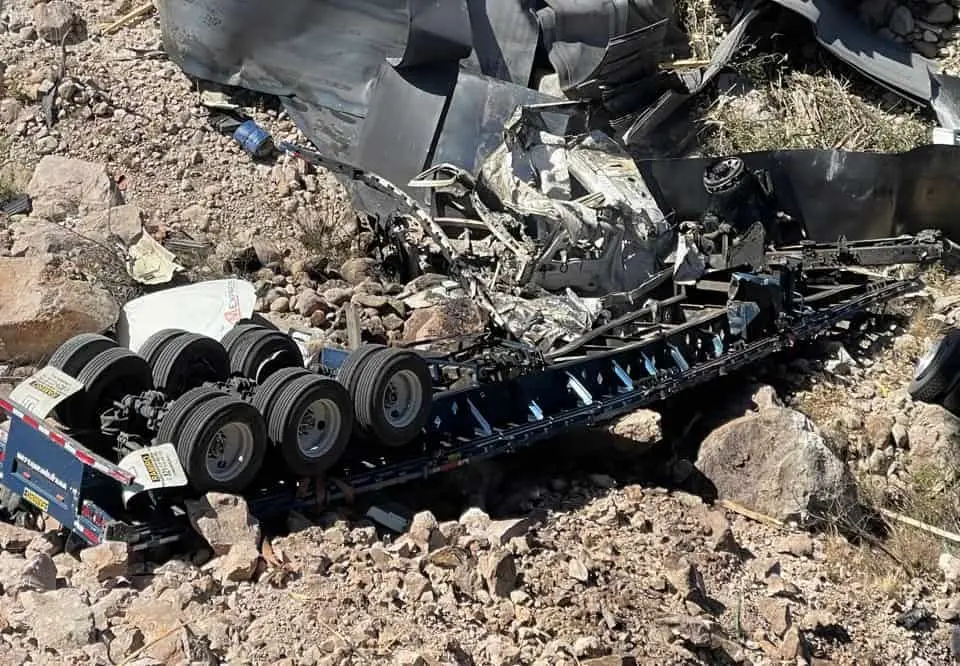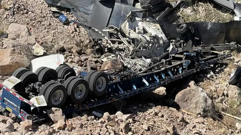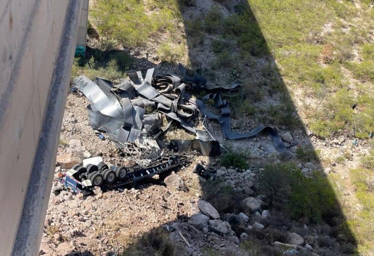Al llegar al puente, pierde el control hacia su derecha para chocar con las barras de acero y caer al vacío de aproximadamente 50 metros. Después de la caída, el tráiler se incendió.