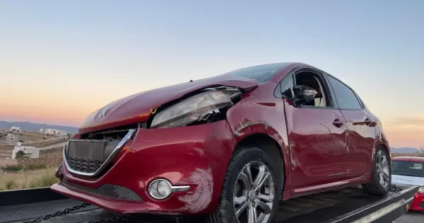 Cerca de las 17:00 horas de esta tarde se registró un accidente en la ruta alterna del libramiento Sur, en el km 4, cuando un automóvil Peugeot de color rojo, con dirección desde el eje 122 de la zona industrial hacia el circuito Sur, perdió el control al salir de la glorieta.
