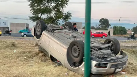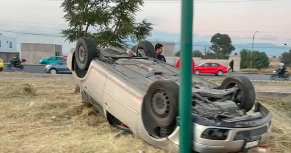 El percance ocurrió alrededor de las 05:00 horas, cuando el conductor que se dirigía hacia la Zona Industrial perdió el control de la unidad, salió hacia su derecha y cayó en un desnivel, donde impactó contra un poste de alumbrado público, quedando con las llantas hacia arriba.