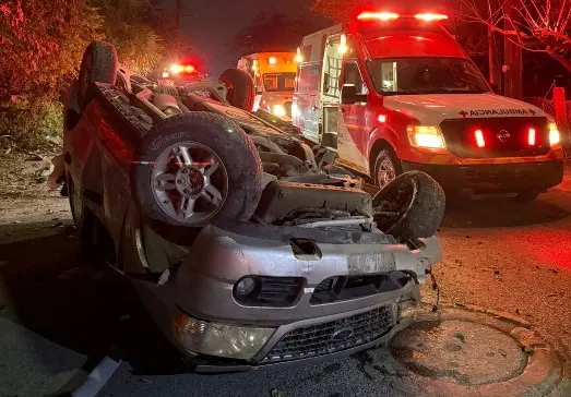 De acuerdo con la información recabada en el lugar, la mujer se dirigía a su domicilio cuando, presuntamente por circular a exceso de velocidad, perdió el control del volante, salió del camino y se impactó contra un poste. Tras el choque, la unidad volcó y quedó invertida sobre la carpeta asfáltica.