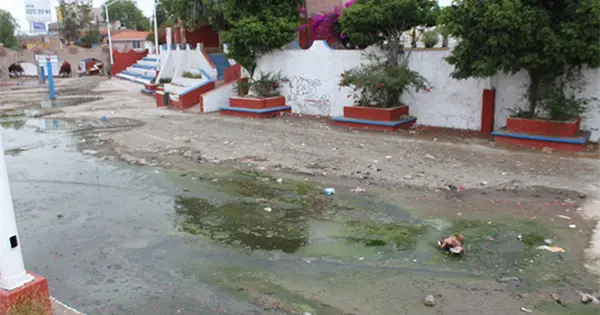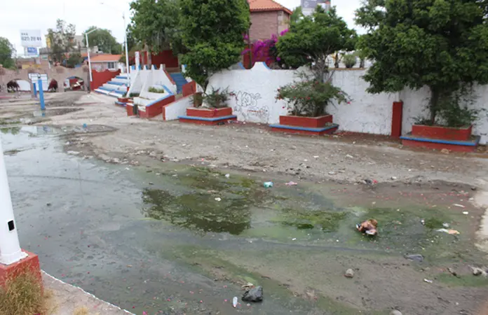 El espacio, que originalmente fue diseñado para el desagüe de agua pluvial, funciona actualmente como descarga de aguas residuales, presuntamente derivado de fallas en la infraestructura hidráulica.
