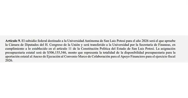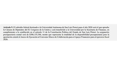 Tras los roces entre el gobierno del estado y la Universidad Autónoma de San Luis Potosí (UASLP) por el adeudo de la partida estatal, la iniciativa de Ley del Presupuesto de Egresos para 2026 prevé un incremento de 68.7 por ciento a la institución, en una medida que busca eliminar una nueva polémica.