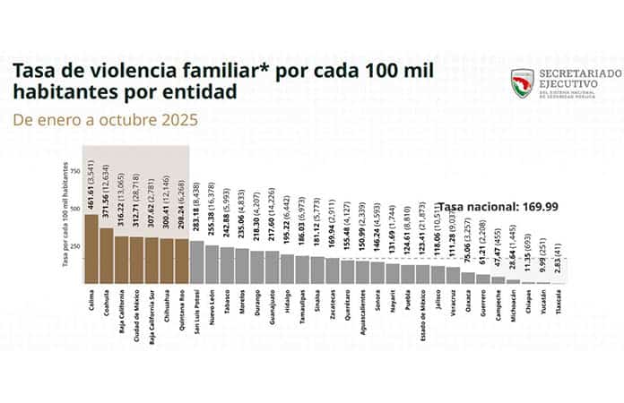 El delito de género de mayor registro en el estado fue la violencia familiar, que pasó de siete mil 588 denuncias a ocho mil 438 denuncias, lo que representa un incremento similar, de 11.2 por ciento, pues se agregaron al conteo 850 querellas.