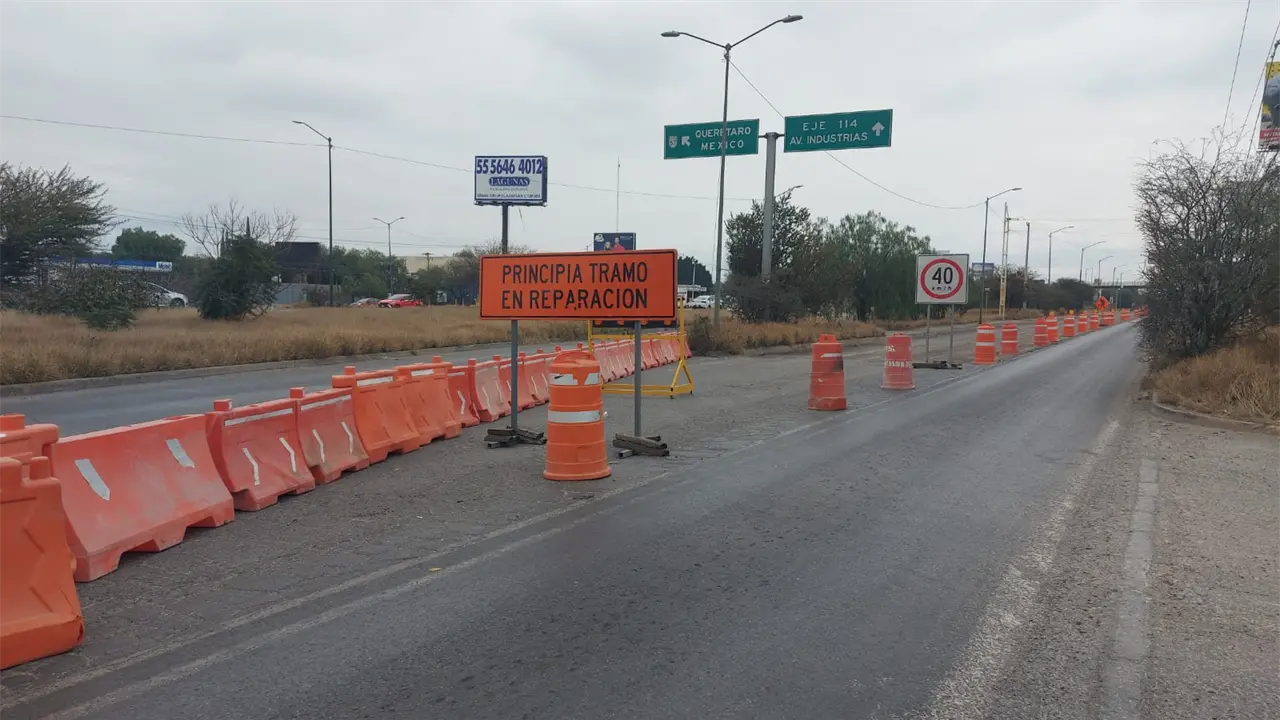 Las obras arrancaron el jueves 8 de enero en el tramo que comprende del Circuito Potosí al Eje 128, donde se ejecuta una reconstrucción a lo largo de más de 12 kilómetros —seis por cada sentido de circulación— con una inversión cercana a los 250 millones de pesos.