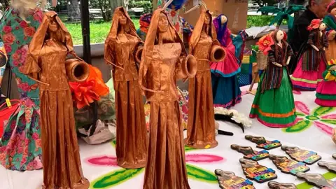 La artesana comentó que, además de las figuras que reproducen a La Aguadora, obra ésta del escultor Alfonso Narváez creada en 1998, también se fabricaron otras figuras en la misma técnica de papel maché, como los personajes del filme Coco y diversos oficios mexicanos tradicionales como el albañil, el panadero, el músico, etcétera, sólo que una buena parte de ellas se vendió durante la reciente Feria Nacional Potosina (Fenapo).