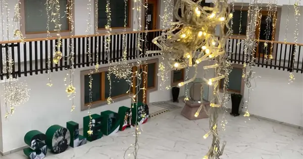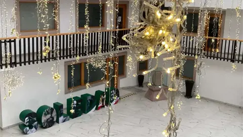 En el patio central de la Presidencia, este año se optó por colocar una serie de luces navideñas que cuelgan desde el segundo piso, simulando una "lluvia de estrellas".